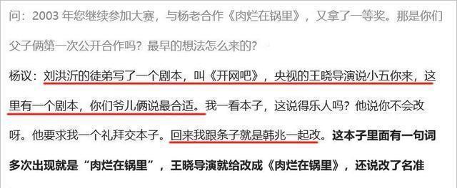 2019年,杨议接纳采访时说,刘洪沂的门徒(指甄皆——萧陶注,下同)写了一个脚本,叫《开网吧》,央视的王晓导演说小五(指杨议)你来,这里有一个脚本,你们爷儿俩说最相宜。杨议又说,他(指王晓)条款我一个礼拜交簿子,记忆我跟便条,即是韩兆通盘改。